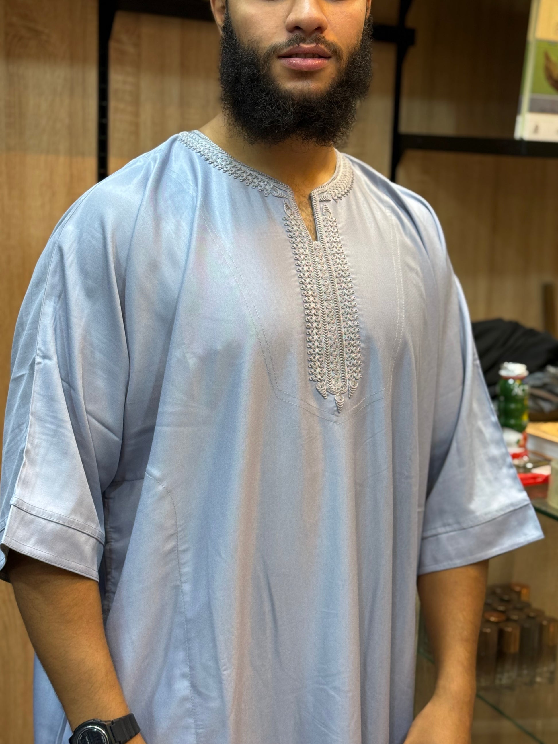 أضف لمسة من الأصالة والراحة إلى إطلالتك مع هذا الجلباب الرجالي العصري. صُمم بعناية من قماش ناعم وخفيف ليمنحك شعورًا بالراحة طوال اليوم، ويتميز بتفاصيل تطريز راقية حول الرقبة تزيده جمالًا وأناقة.