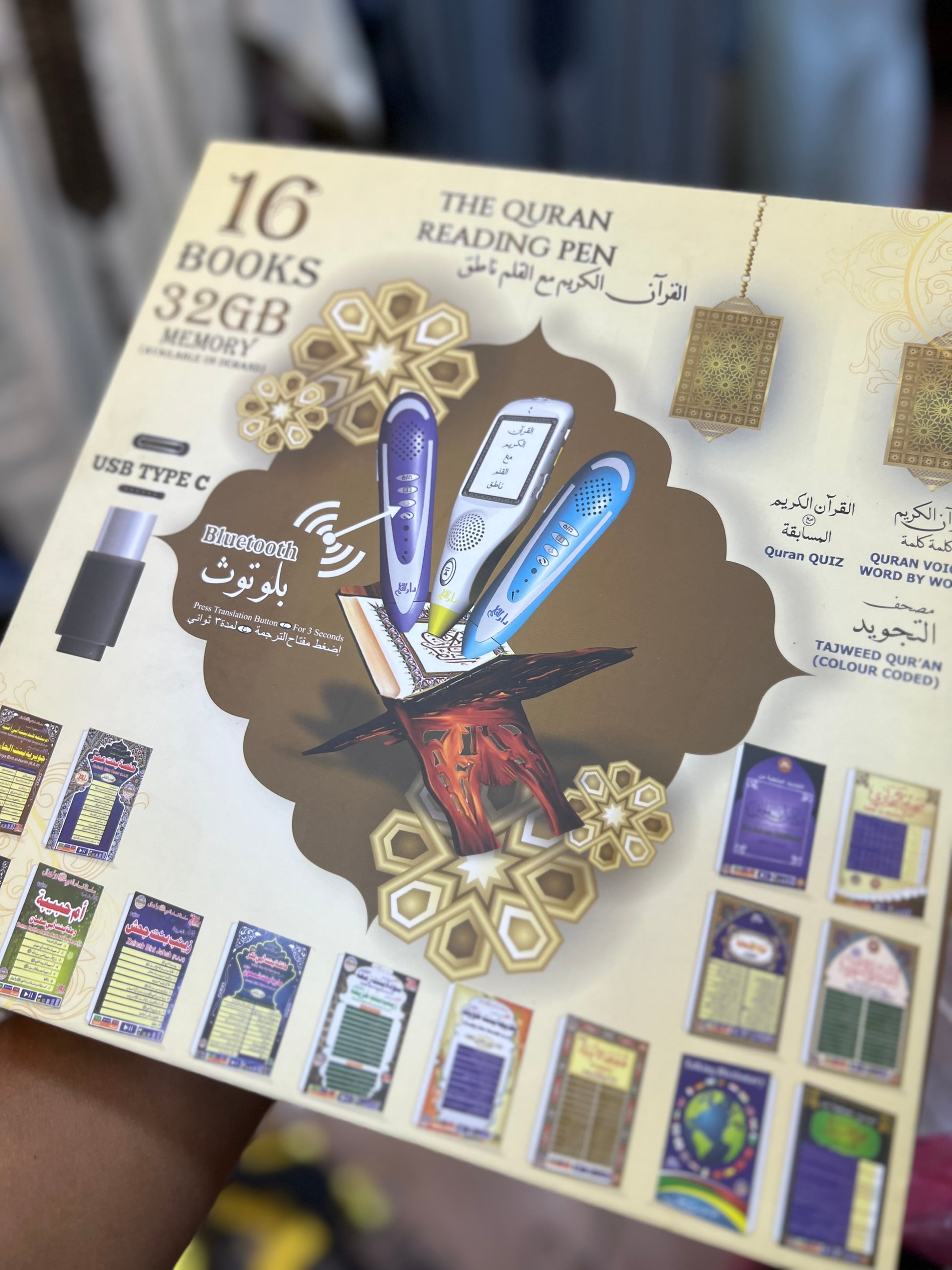 هو مصحف ملوّن يوضح أحكام التجويد بالألوان، مزوّد بقلم إلكتروني ناطق يتيح الاستماع لتلاوة الآيات بصوت مقرئين مختلفين.